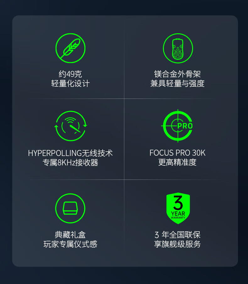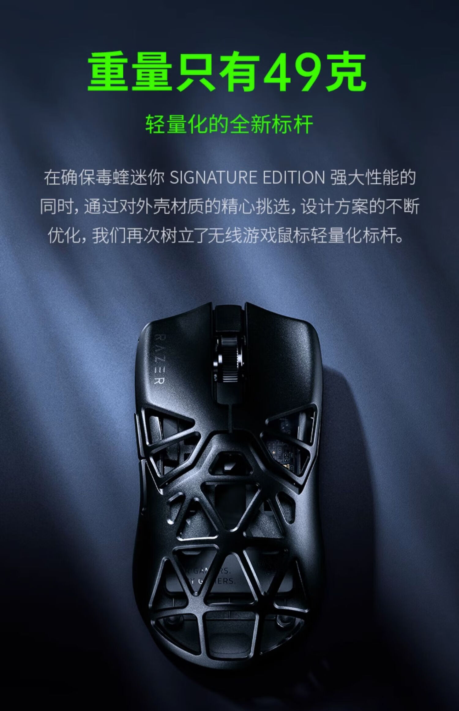雷蛇(Razer)毒蝰迷你SE 49g輕量化無(wú)線游戲鼠標(biāo)鎂合金鏤空30KDPI帶8K接收器 毒蝰mini Signature-Edition
