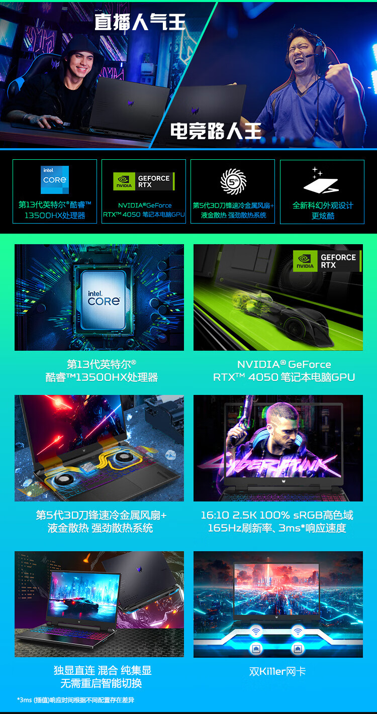 宏碁(acer)掠奪者·擎Neo 16英寸2.5K電競游戲本 工作站級筆記本電腦(13代酷睿i5-13500HX 16G 512G RTX4050)