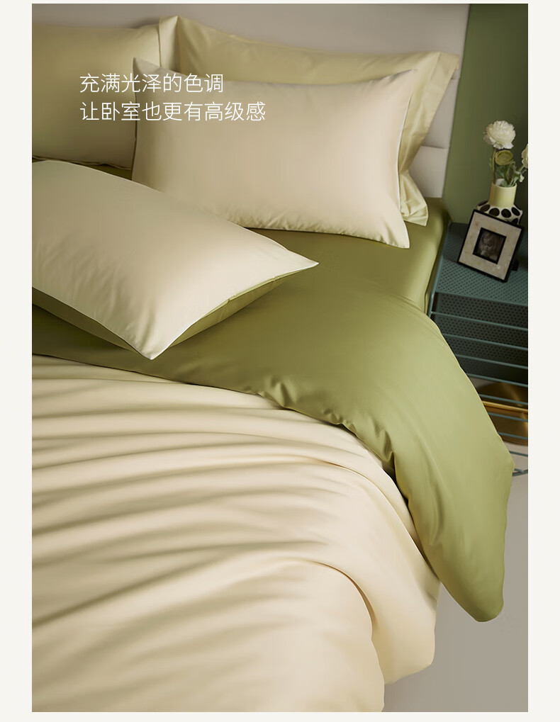 商品名稱:MIDO HOUSE銘都100支純棉床上四件套四季親膚 淺茶杏配松葉綠 1.5m床單款