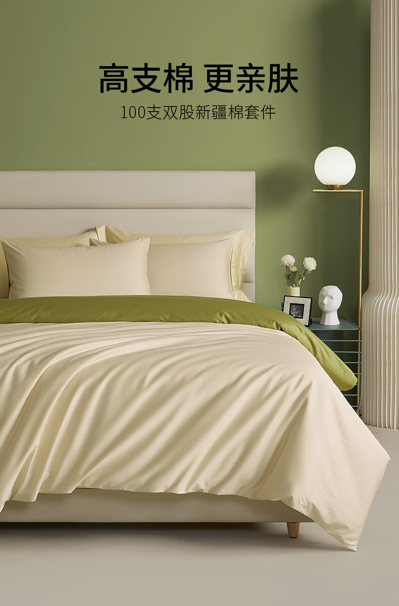 MIDO HOUSE銘都100支純棉床上四件套四季親膚 淺茶杏配松葉綠 1.5m床單款