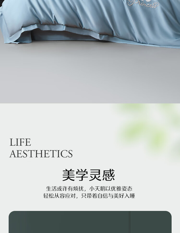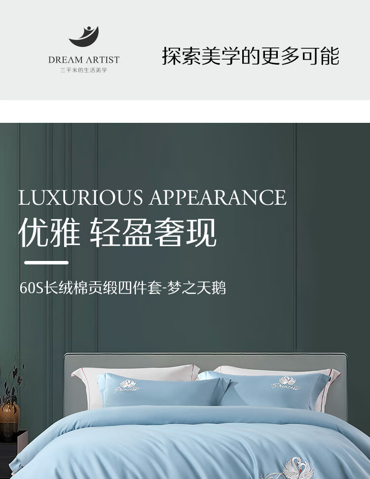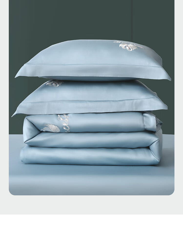 商品名稱:水星家紡60支長絨棉床上四件套純棉100%純棉高級感套件1.5m床 天鵝 灰藍