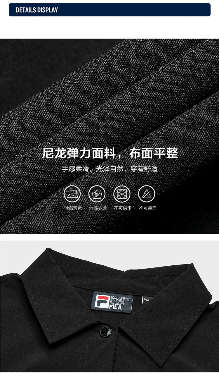 商品名稱:FILA 斐樂官方女子梭織連衣裙2024夏季新款時尚寬松翻領收腰裙子 正黑色-BK 170/88A/L
