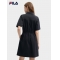 FILA 斐樂官方女子梭織連衣裙2024夏季新款時尚寬松翻領收腰裙子 正黑色-BK 170/88A/L